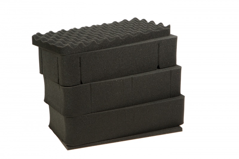 • Слой рельефного поропласта ( пенополиуритан ППУ ) в крышке кейса, несколько слоев поропласта с адаптивной насечкой в сердцевине и подложка в днище кейса. Насеченный поропласт удобен для укладки и подгонки под конкретные размеры оборудования.